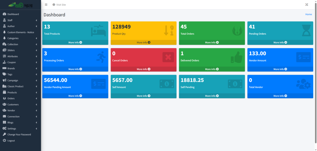 👉 চাইলে একাধিক বিক্রেতা (vendor) যুক্ত করা যায়, প্রতিজন নিজের পণ্য ম্যানেজ করতে পারেন।